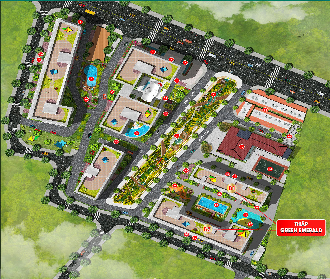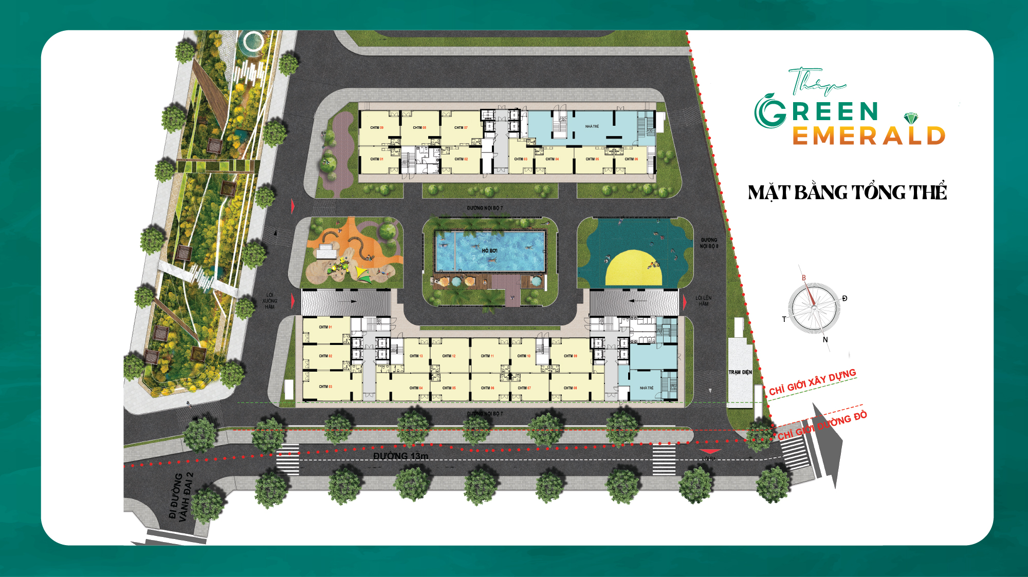 GREEN EMERALD – Tháp căn hộ kế tiếp trong khu phức hợp Bcons City được Tập đoàn Bcons ra măt thị trường sau thành công của các tháp trước đó. Sở hữu vị trí đắc địa ngay trung tâm nội khu, Bcons Green Emerald được thừa hưởng nhiều tiện lợi về vui chơi sinh hoạt của cư dân bởi các tiện ích được phục vụ ngay dưới sân nhà.